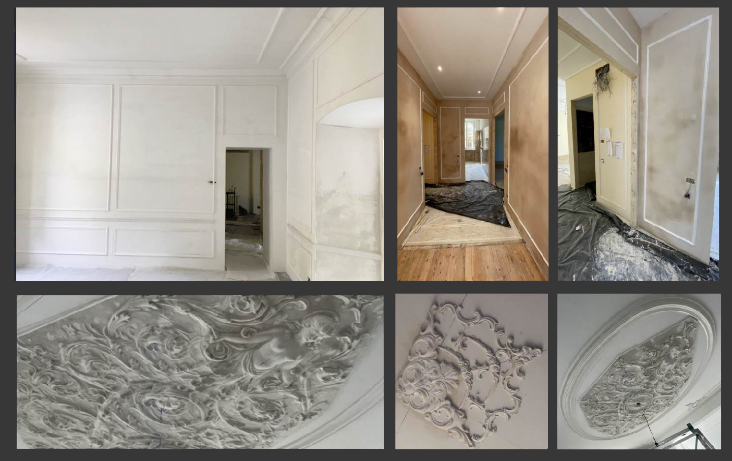 The conservative restoration project and the renovation of this Château in the Loire includes a restoration of the facades and external compositional elements, the internal frescoes, the historic plaster and wood frames and the ancient boiseries. A major intervention was carried out to consolidate damaged wooden floors with their partial replacement. Particular attention was paid to the renovation of the parquet and stone or marble floors, with replacement only of the damaged areas, using wood or marble. A redistribution of the internal spaces was carried out with the creation of four new bathrooms on the first floor serving the suites where they were not previously present. The intervention respected the historicity of the building, maintaining the integrity of the original architectural and artistic elements, while ensuring comfort and usability for modern users. The work was completed by the restoration of the furnishings and reproducing them according to the historical designs of the time.
