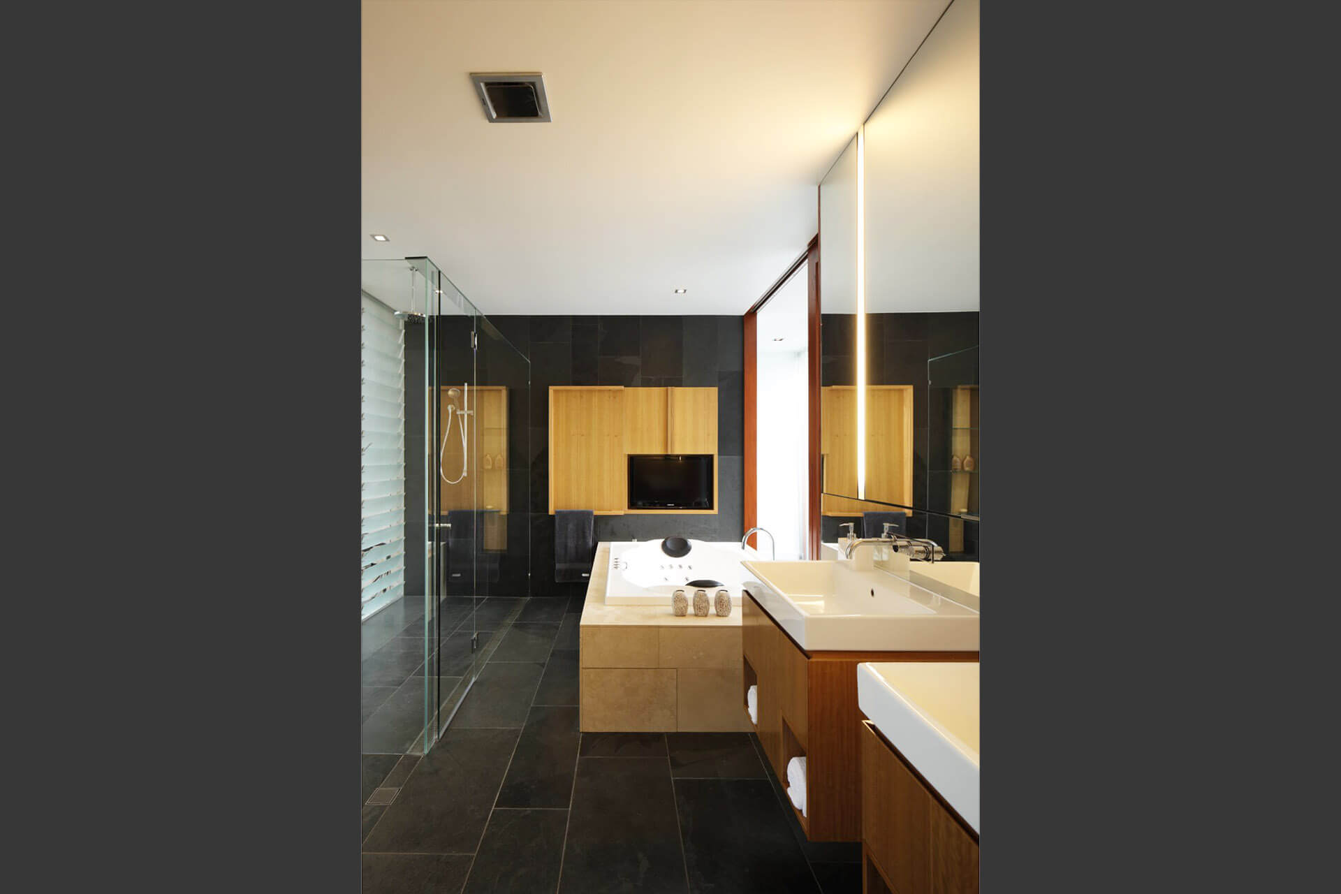 On the Veronese shore of Lake Garda,the construction of a 550sqm manor villa with outdoor and indoor swimming pool on two levels as well as a technical basement and garage.