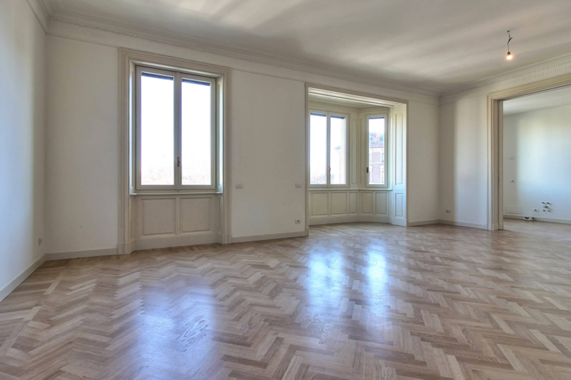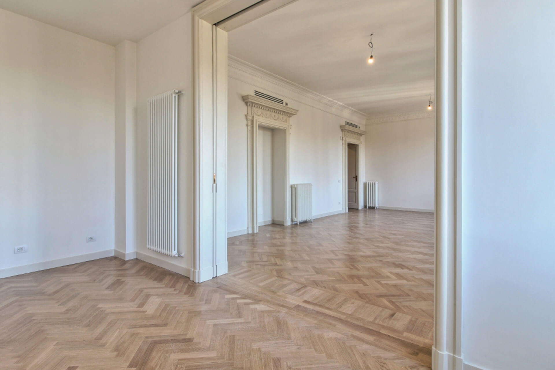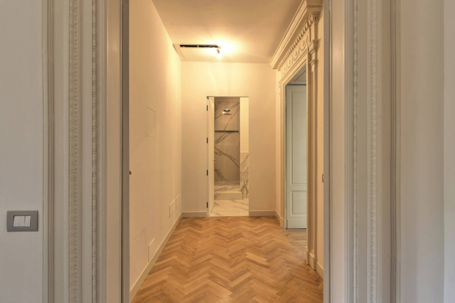 Projet à Milan pour la division de deux unités résidentielles prestigieuses en deux appartements indépendants, avec une nouvelle redistribution des espaces intérieurs, en sauvegardant et en dupliquant les éléments décoratifs de l’époque, et une rénovation complète des systèmes.