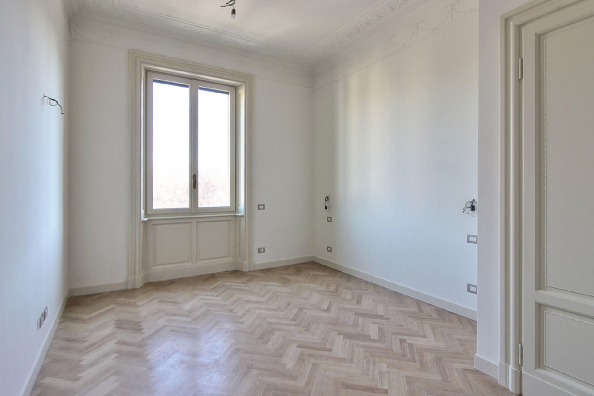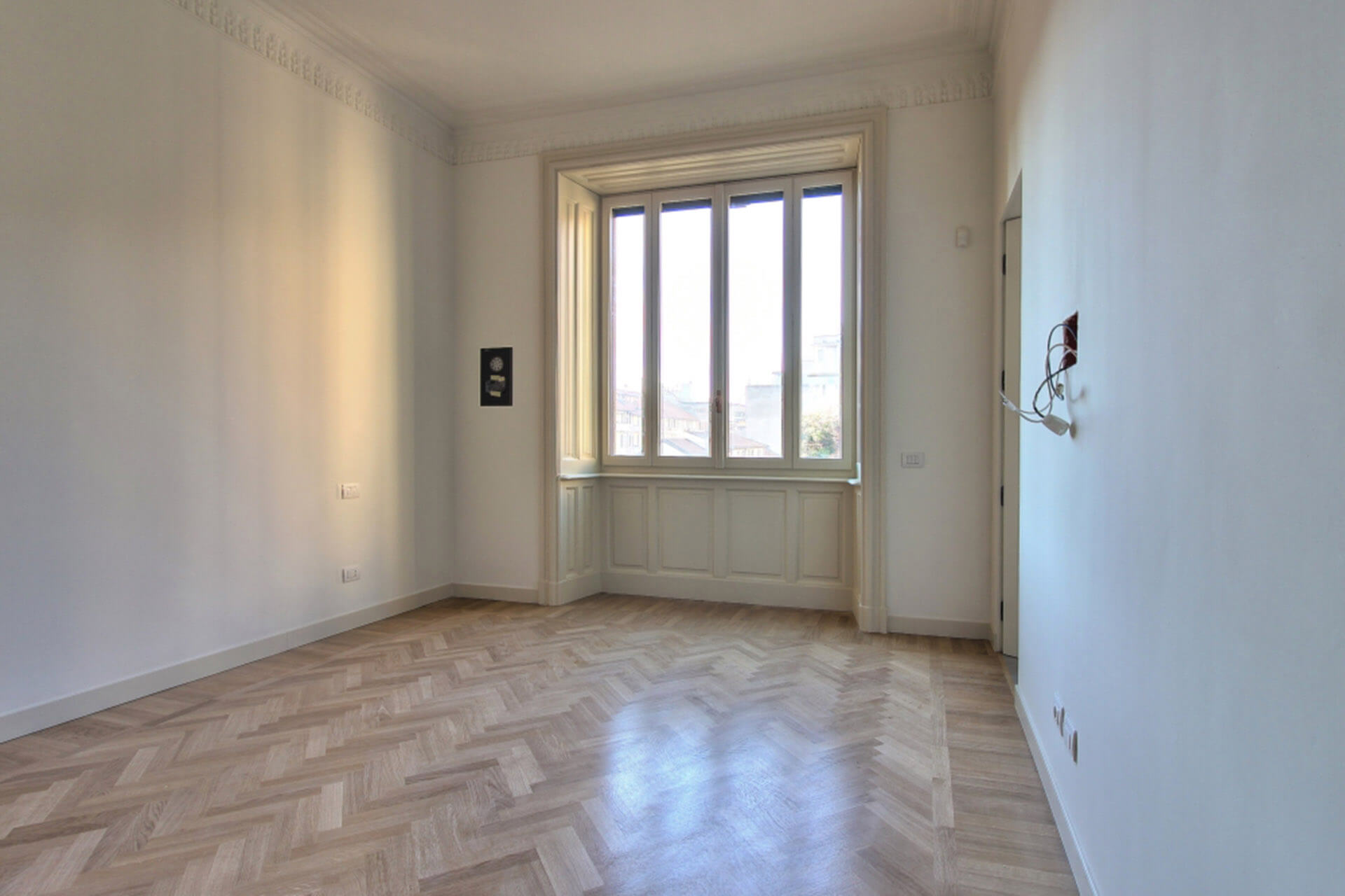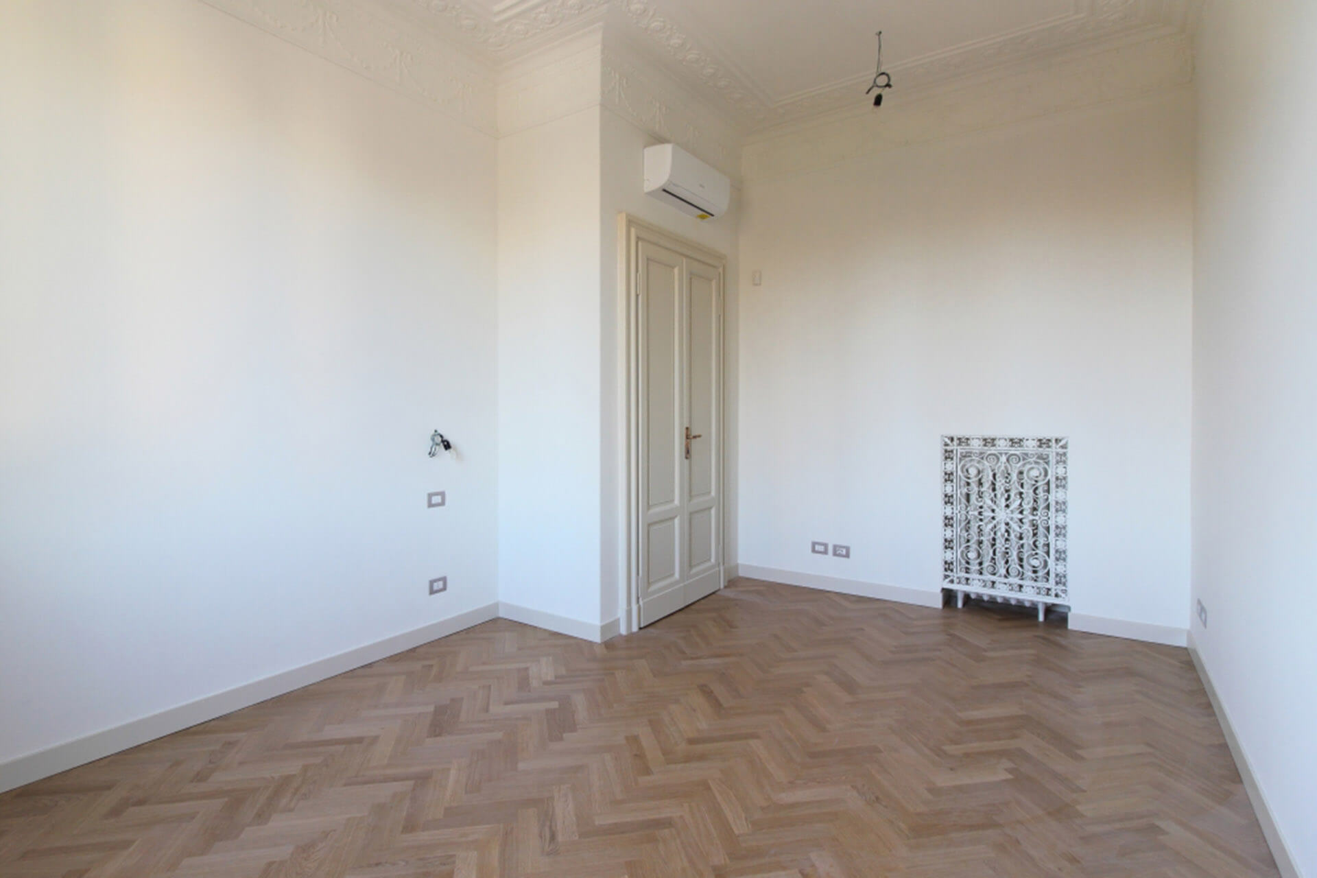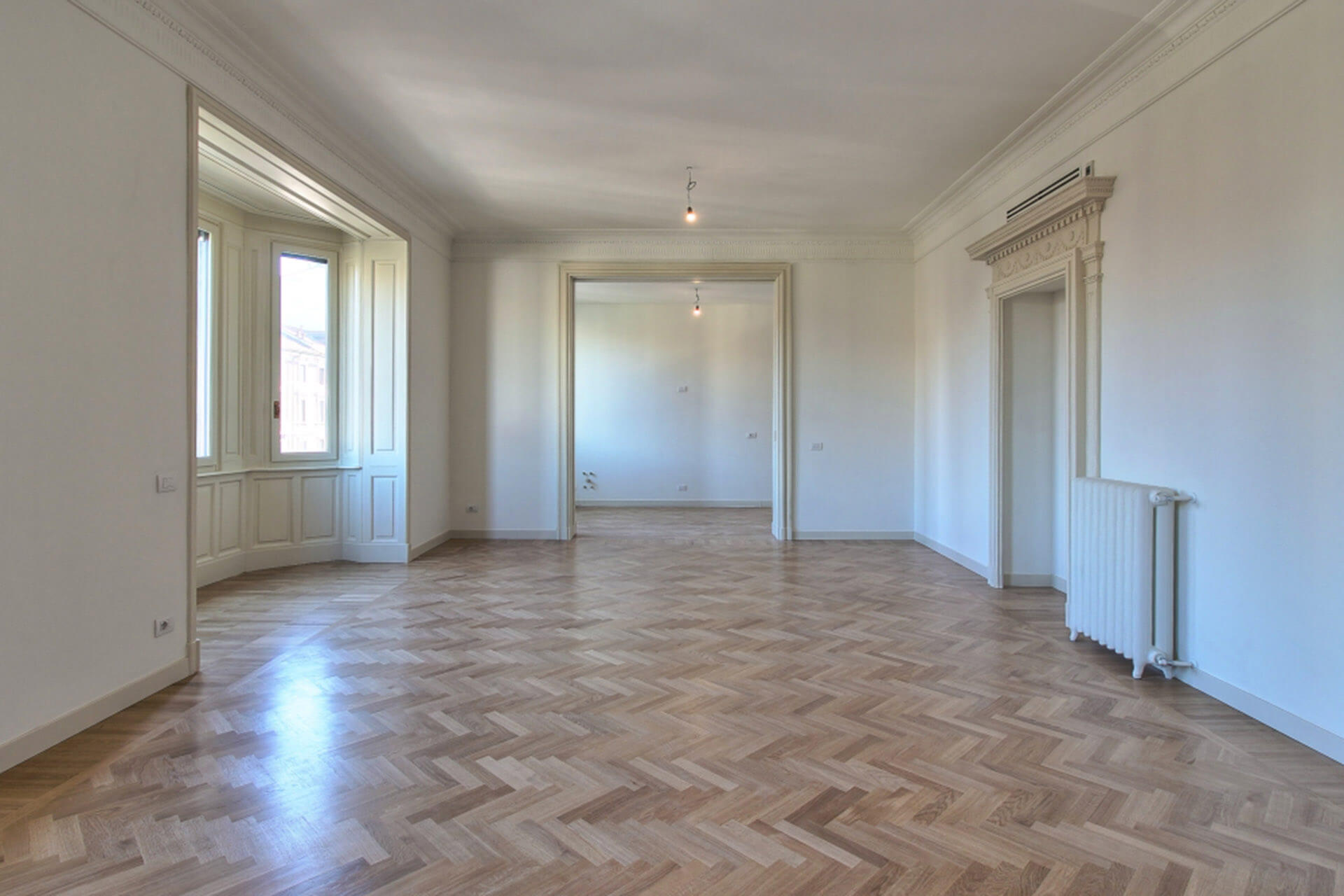 Projet à Milan pour la division de deux unités résidentielles prestigieuses en deux appartements indépendants, avec une nouvelle redistribution des espaces intérieurs, en sauvegardant et en dupliquant les éléments décoratifs de l’époque, et une rénovation complète des systèmes.
