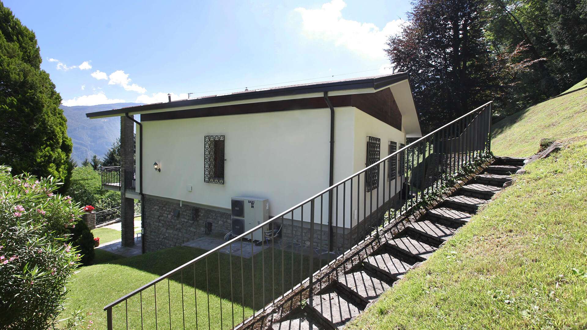 Villa unifamiliare affacciata lago di Como, realizzazione di efficientamento energetico e ristrutturazione. Progetto e realizzazione di intervento di rifacimento della copertura con inserimento di campus fotovoltaico, efficientamento dell’involucro edilizio con cappotto di vari spessori, al fine di evitare di snaturare la villa caratterizzata da corsi di pietra locale. Rifacimento impiantistico, con posa di pompa di calore, riscaldamento a pavimento e nuovo impianto elettrico. Ristrutturazione interna completa.
