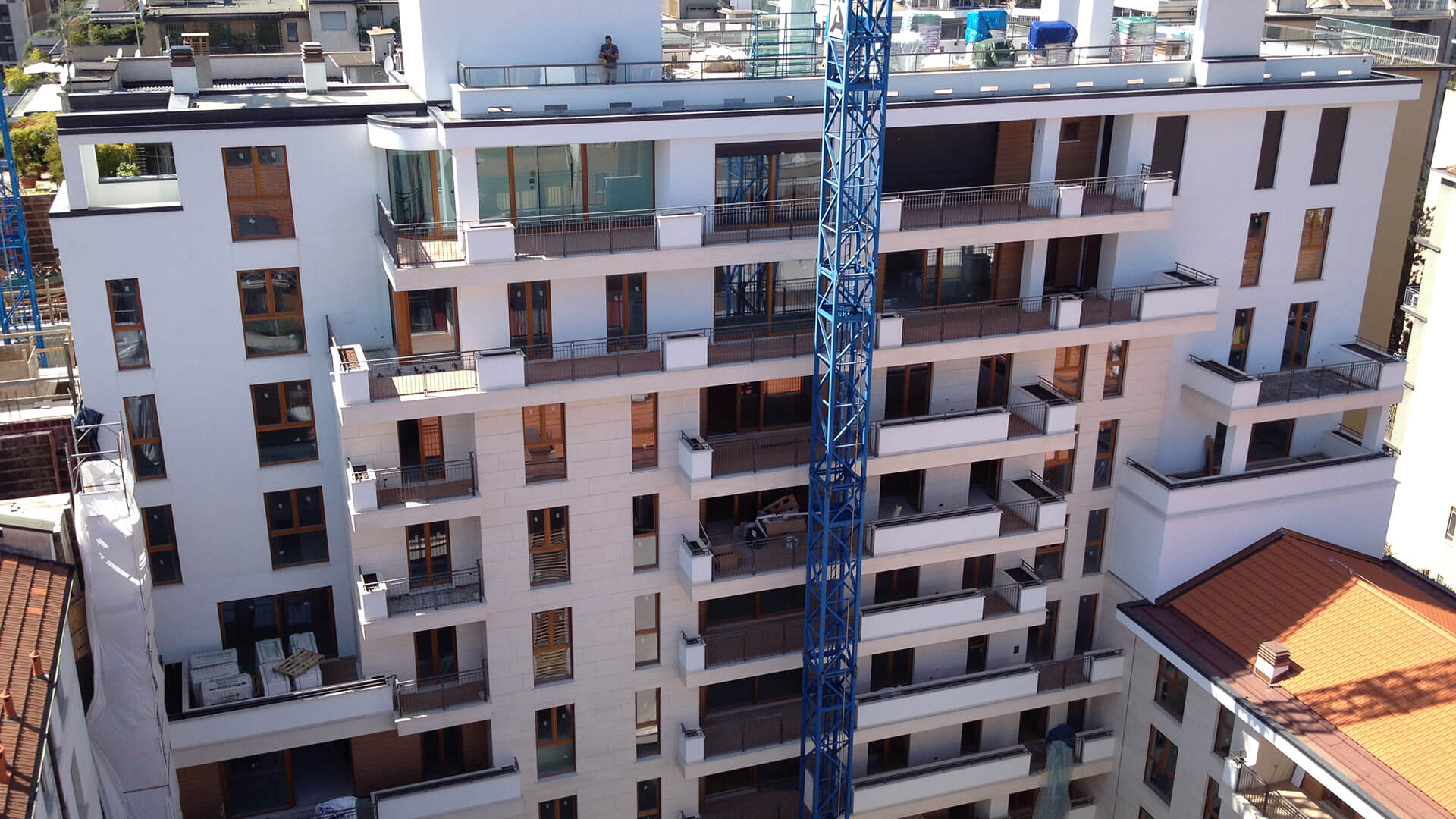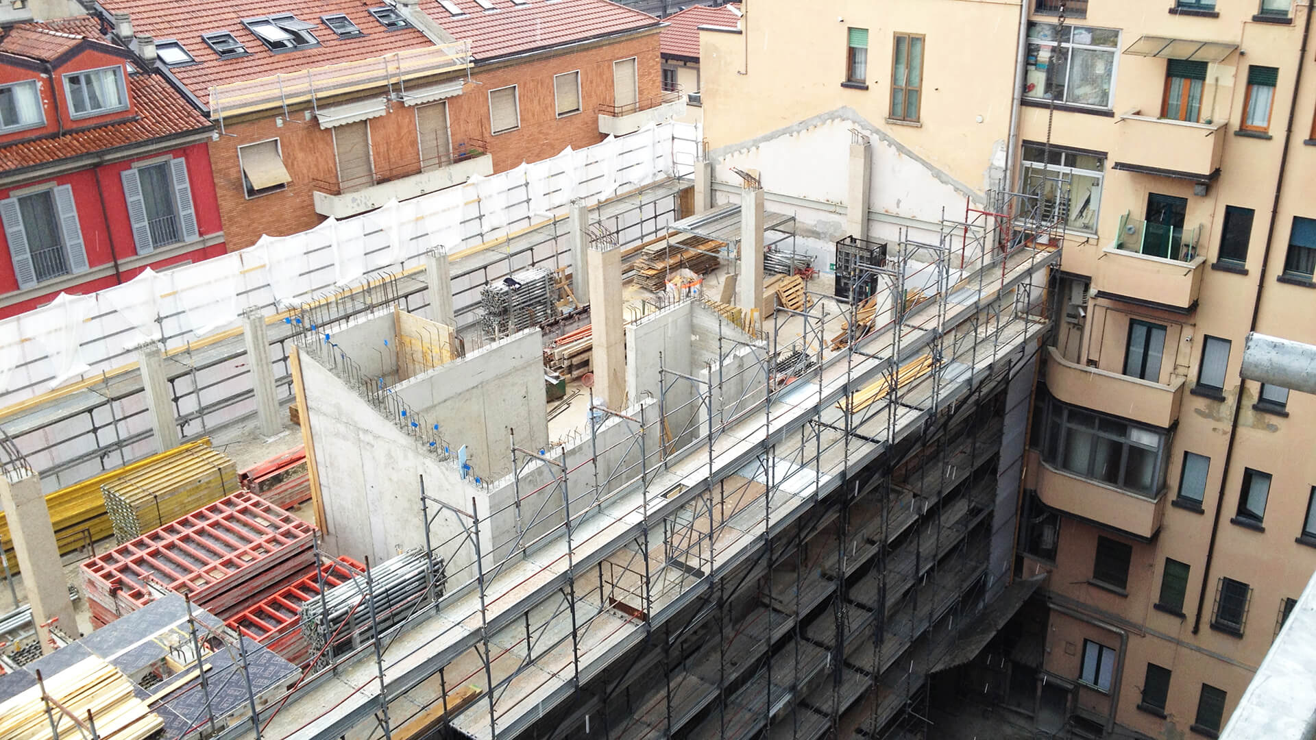 Nel cuore di Milano, demolizione integrale e ricostruzione di due corpi di fabbrica, con realizzazione di quattro piani interrati di circa 5.500 mq ad uso autorimesse, cantine e locali tecnici comprese opere di sottomurazione e controventamento. Costruzione di nuovo edificio di 10 piani fuori terra per il corpo interno e quattro piani per il corpo sulla pubblica via per un totale di circa 6.500 mq ad uso residenziale. Redazione di tutte le fasi del processo edilizio al fine di dare l’opera completa.