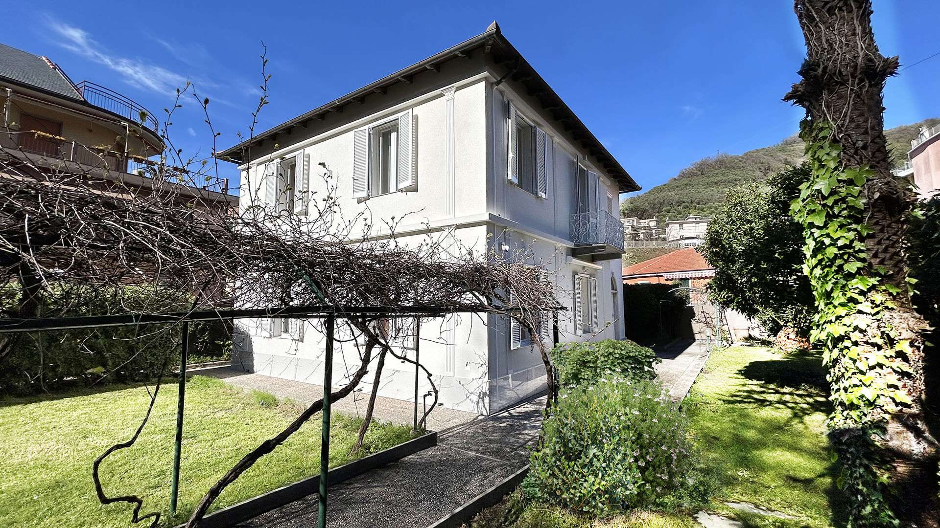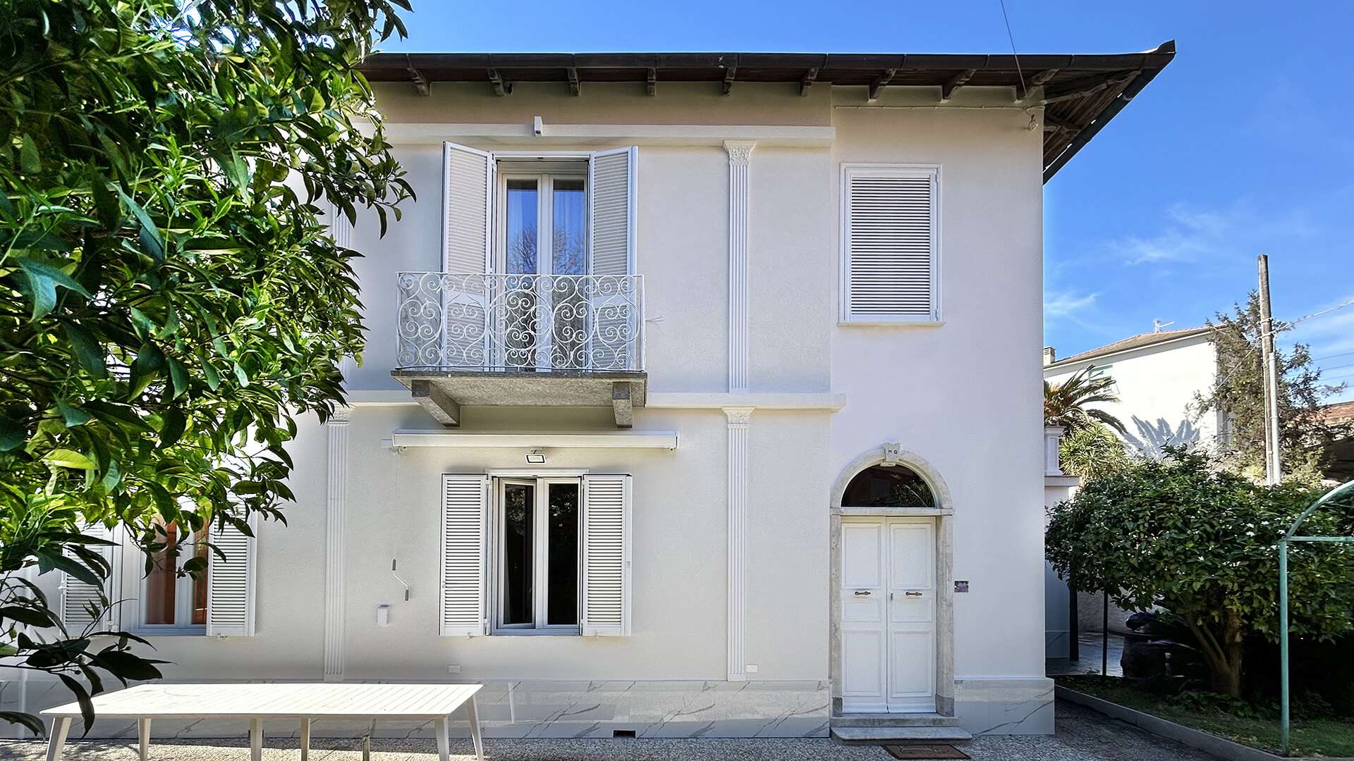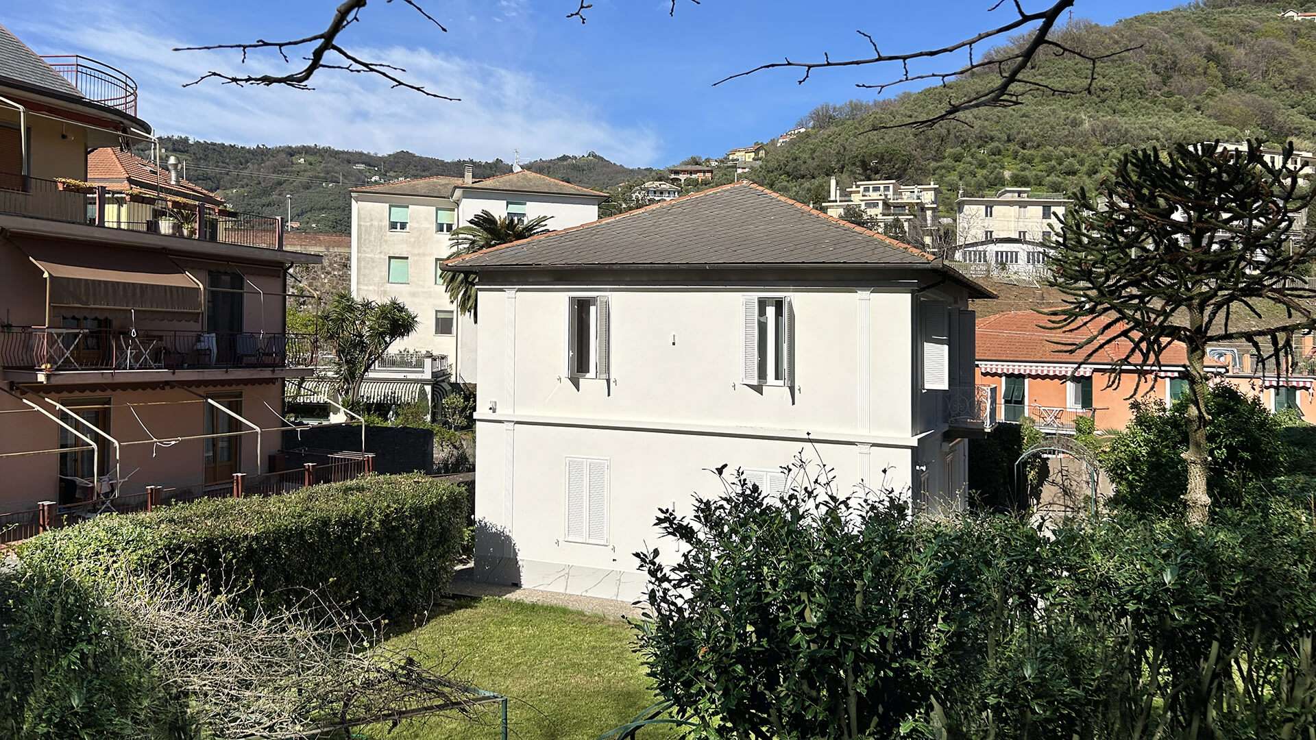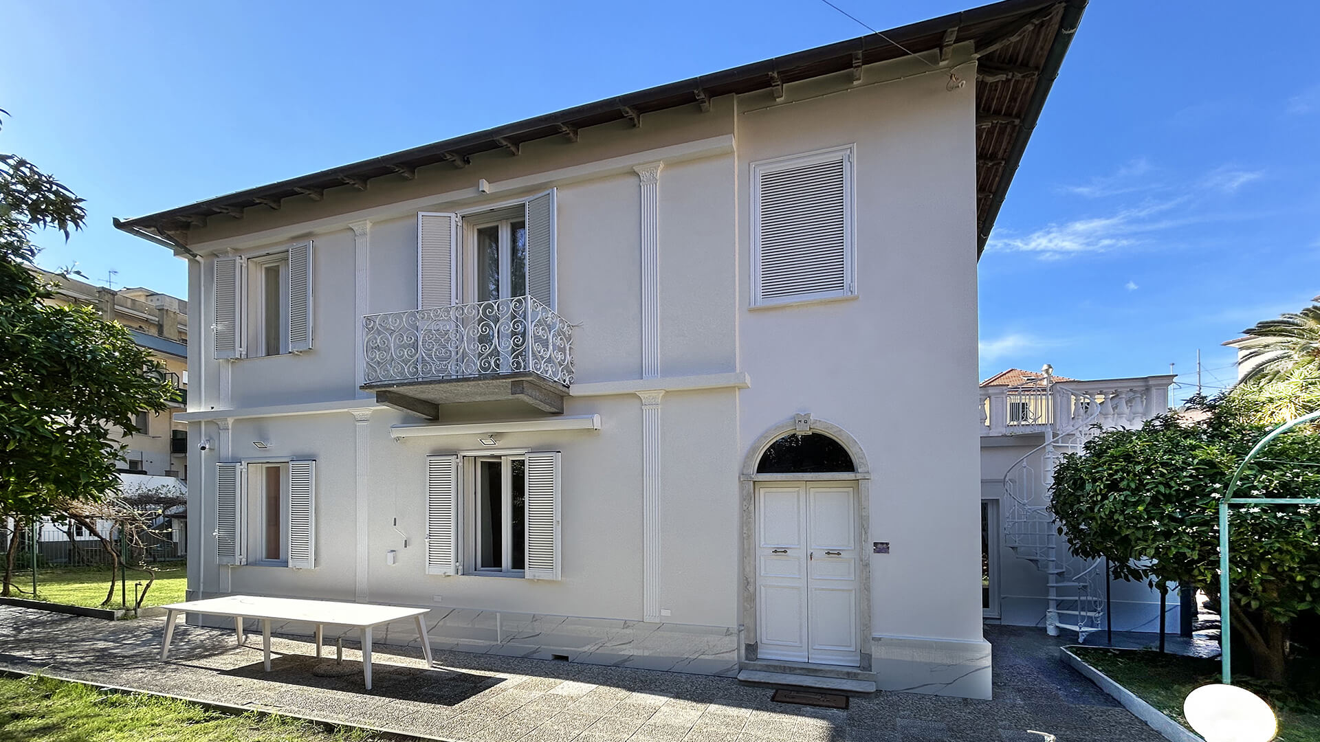 Progetto e opere di restauro conservativo delle facciate di questa ville del 1906 sita in Liguria, con l’obiettivo di preservare l’autenticità dell’ edificio, rispettando le tecniche tradizionali e i materiali originali. Inoltre, sono stati eseguiti interventi di ristrutturazione mirati a migliorare l’efficienza energetica, includendo il rifacimento degli impianti e l’adozione di soluzioni sostenibili, come l’isolamento termico e la posa di nuovi infissi compatibili con il sedime originale. Gli affreschi interni, che decorano le stanze più prestigiose delle ville, sono stati restaurati con delicatezza, riportandoli alla luce e restituendo loro la vivacità dei colori originali. La combinazione di tecniche moderne e tradizionali ha permesso di ottenere un perfetto equilibrio tra conservazione storica e comfort abitativo contemporaneo.