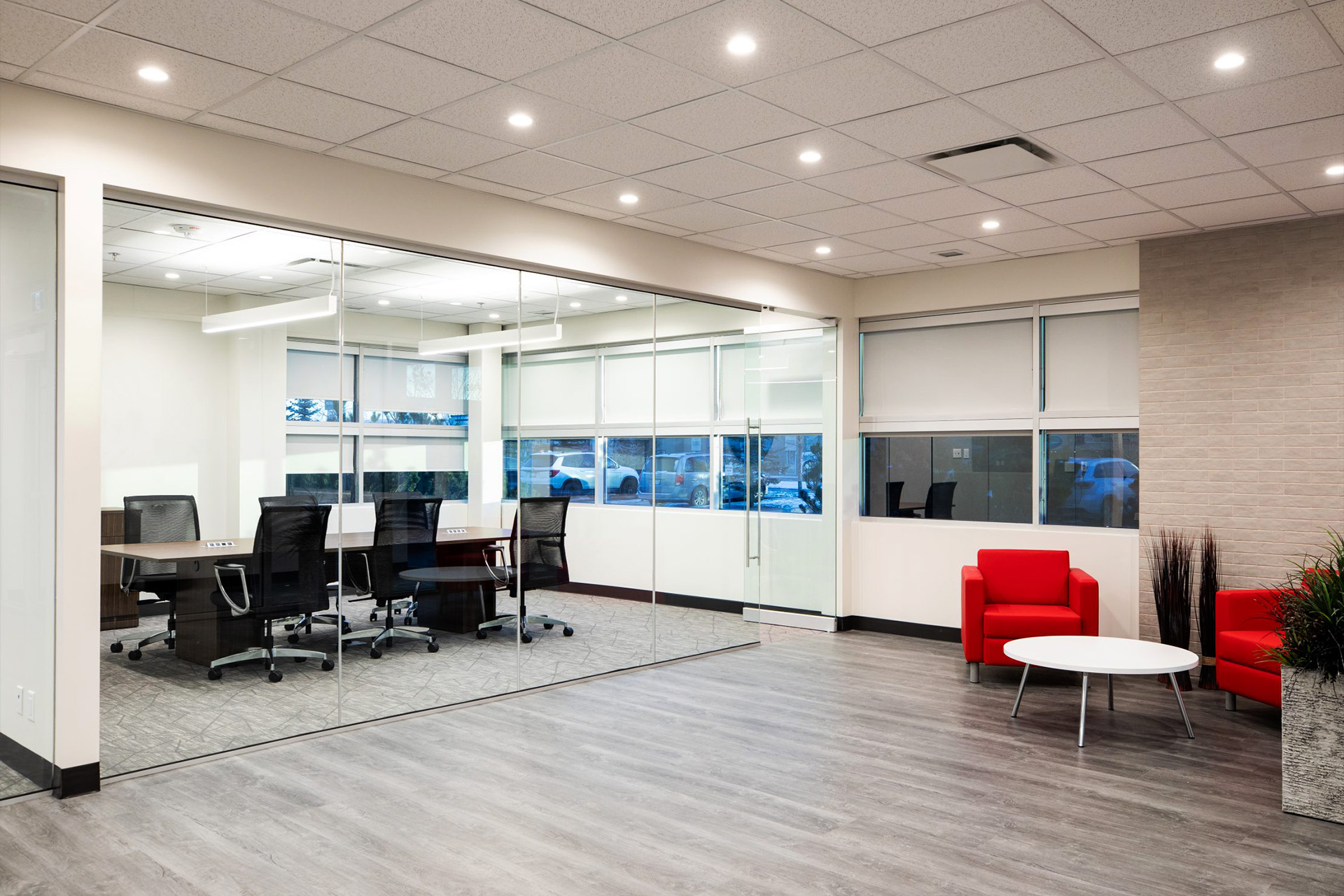 Progetto e ristrutturazione interna di palazzina aziendale ad uso uffici. La realizzazione prevede l’adeguamento sismico, nuova distribuzione spazi interni e realizzazione ascensore, impiantistica completa, progetto di design e fornitura di arredi.