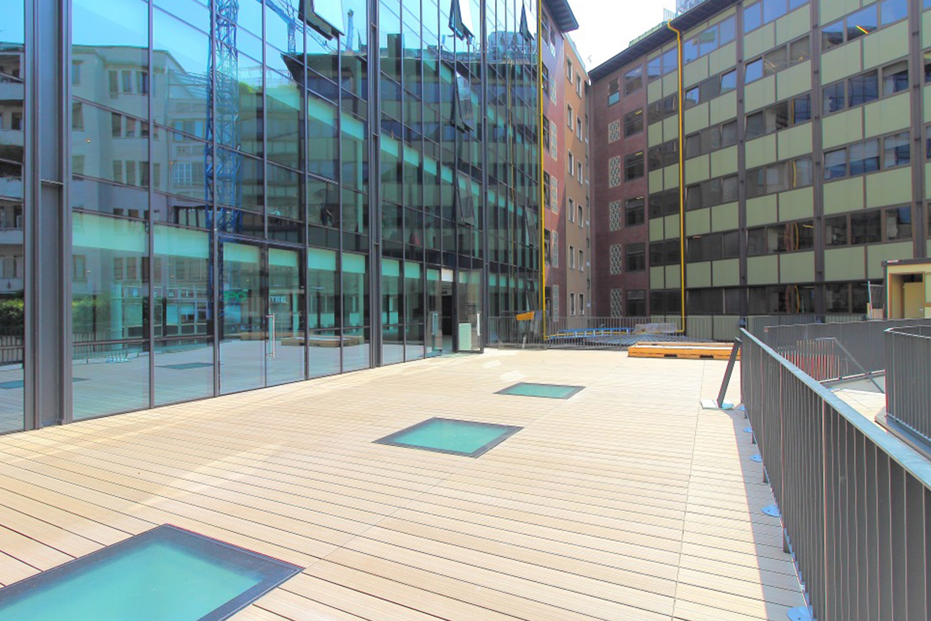 Riqualificazione di immobile ad uso uffici nel centro di Milano della superficie di mq 9.000. Il progetto prevedere la demolizione integrale degli interni con la conseguente ridistribuzione degli spazi, il rifacimento integrale delle facciate e nuove coperture.